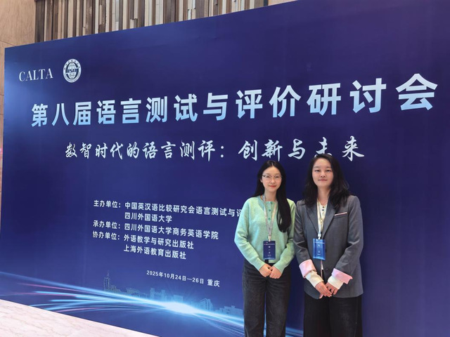 10月24日至26日,第八届语言测试与评价研讨会在重庆隆重举行。本届会议以“数智时代的语言测评:创新与未来”为主题,汇聚了200余位海内外专家学者,共同探索了大语言模型、生成式人工智能(GenAI)等前沿技术如何重塑语言测评的理论与实践。我院英语系教师赵洁博士、程一丹博士应邀参会,并与学界学者进行了深入交流。