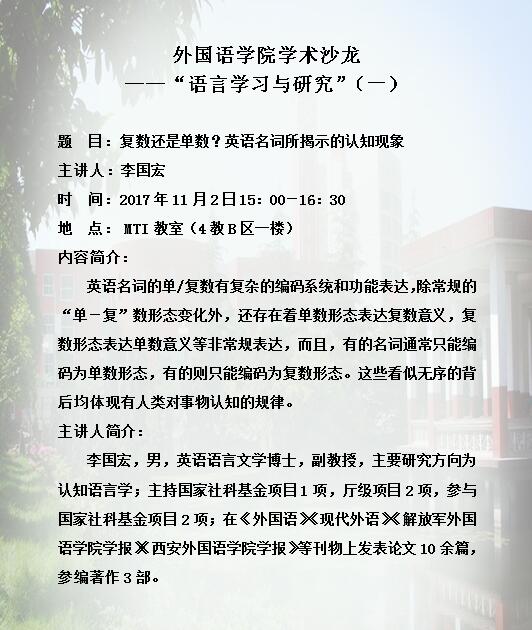 学术讲座通知(11月2日15:00-16:30,MTI教室)