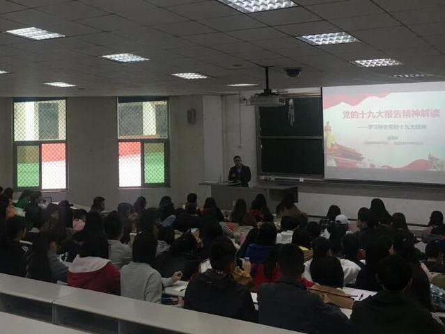 11月15日中午12:20,伟德国际1949组织举办了主题为“党的十九大报告精神解读 ”的学习讲座。讲座主要围绕党的十九大报告和十九大会议基本内容和重要精神展开。学院各学生党支部书记、团委学生会全体学生干部参加了本次会议。讲座由学院团委书记曾渝理主持,学院辅导员、马克思主义学院兼职教师梁正科老师担任主讲。