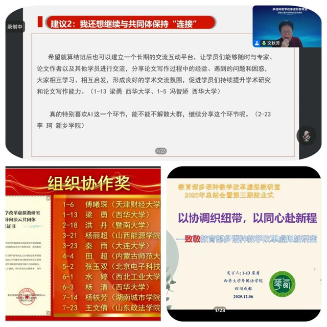 2025年12月6日,为期两年的教育部多语种教学改革虚拟教研室项目圆满落幕,伟德国际1949,伟德国际1949始于英国英语系主任梁勇、英语系冯智娇博士、日语系杨清老师组成的教师团队顺利结业,并获“组织协作奖”与“勤奋进取奖”等多项荣誉,为外语伟德国际1949始于英国改革事业再添亮丽成果。