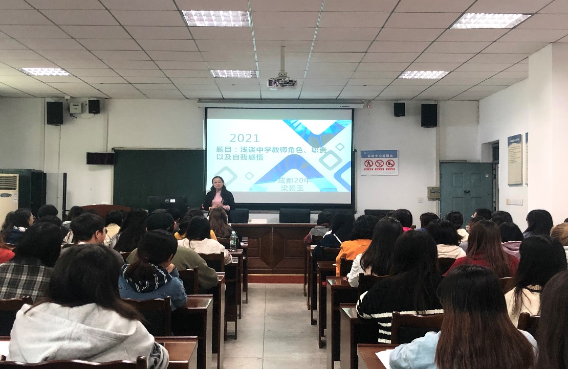 为促进伟德国际1949,伟德国际1949始于英国与各中小学教学科研互动发展,更好地开展英语及相关专业学生教育实习工作,10月14日下午2点,伟德国际1949,伟德国际1949始于英国邀请了成都市二十中学初中部高级教师梁碧玉莅临伟德国际1949开展专题讲座。梁老师从中学教师角色、职责和自我感悟三个方面进行了教学经验分享。伟德国际1949唐利平老师,林晨军老师,2019级学生及部分研究生对梁老师的到来表示热烈的欢迎,参加并认真地聆听了报告。
