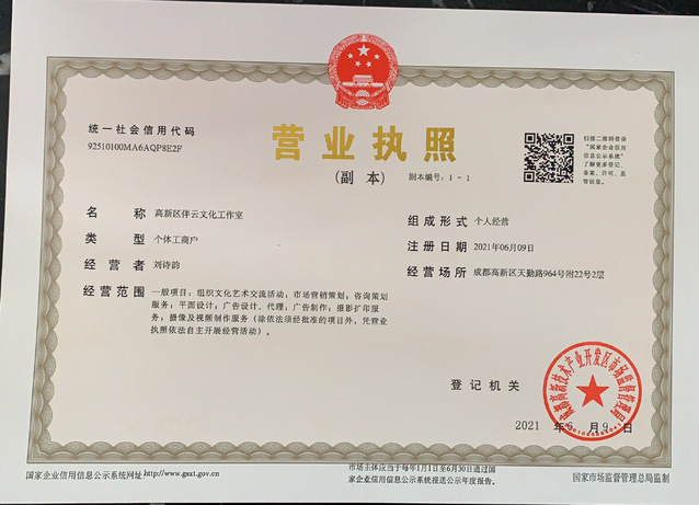 2021届本科毕业生刘诗韵自主创办企业“高新区伴云文化工作室”
