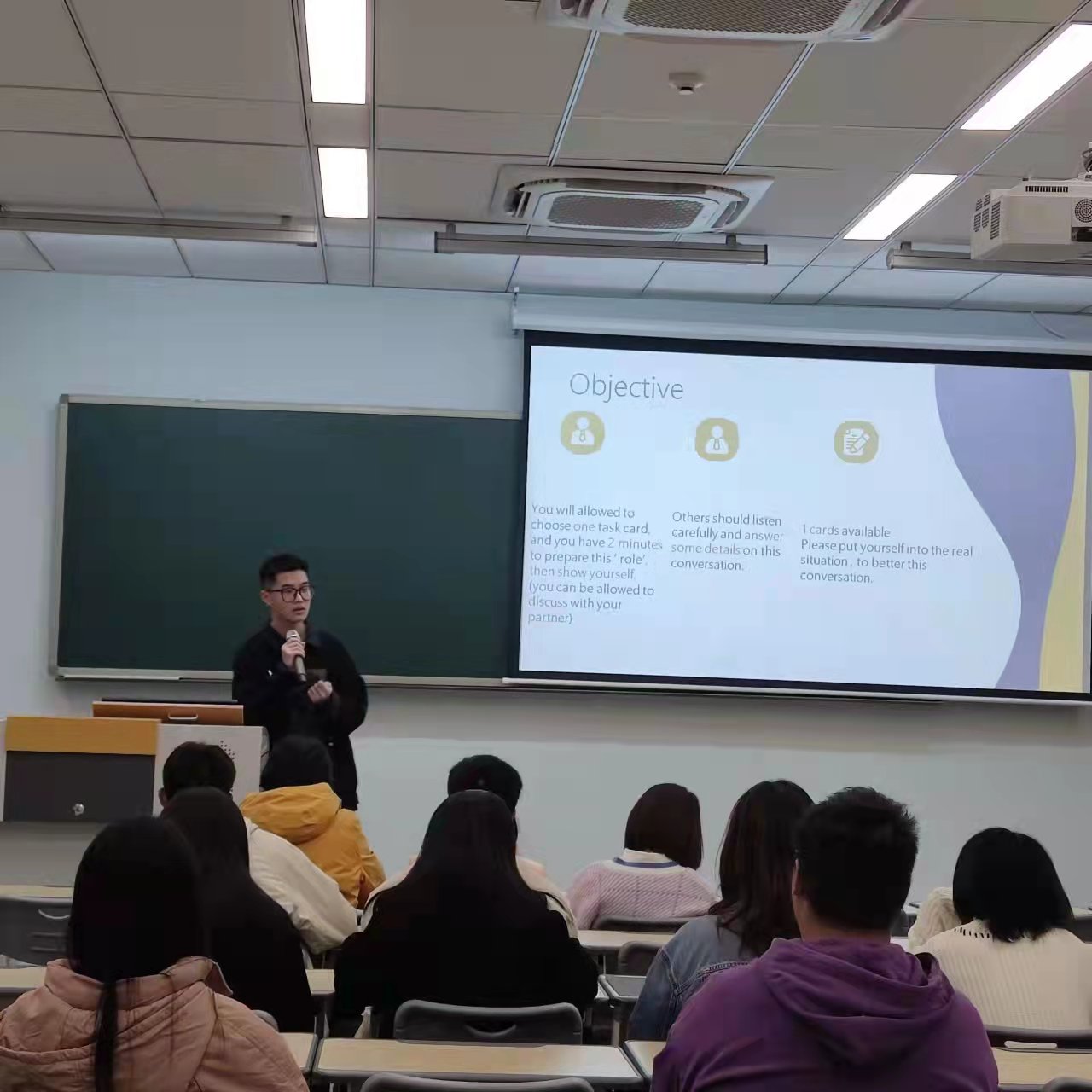 英语日常用语学习活动于2021年11月20日在2教203举行,此次英语角特别邀请了莫虹学同学与大家分享自己的英语学习方法和训练英语日常用语的经验。莫同学鼓励同学们要积极地开口,要敢于去用英语表达自己,不断提高自己的口语水平。同时,莫同学还准备了以“check in/check out”为主题的互动环节,模拟酒店入住登记,通过实景对话来帮助同学们积累日常用语。