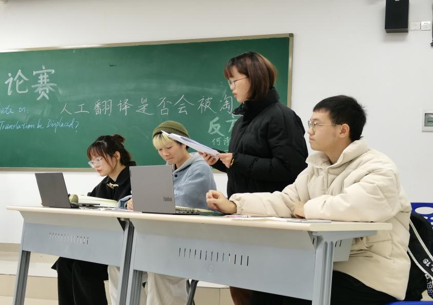 双语辩论赛分别于2021年11月28日和12月5日在一教201展开,第一次翻译1班对阵翻译2班,以“人工翻译是否会被淘汰”这样具有专业性的话题为辩题,第二次翻译3班对阵翻译4班,以“最终没有在一起vs从未在一起”这样更加贴近日常的话题为辩题。在两次的辩论赛中,双方辩手,针尖对麦芒,慷慨陈词抒己见,各展所长,为大家带来了一场精彩的辩论盛宴。