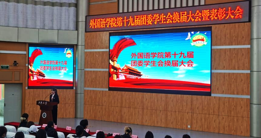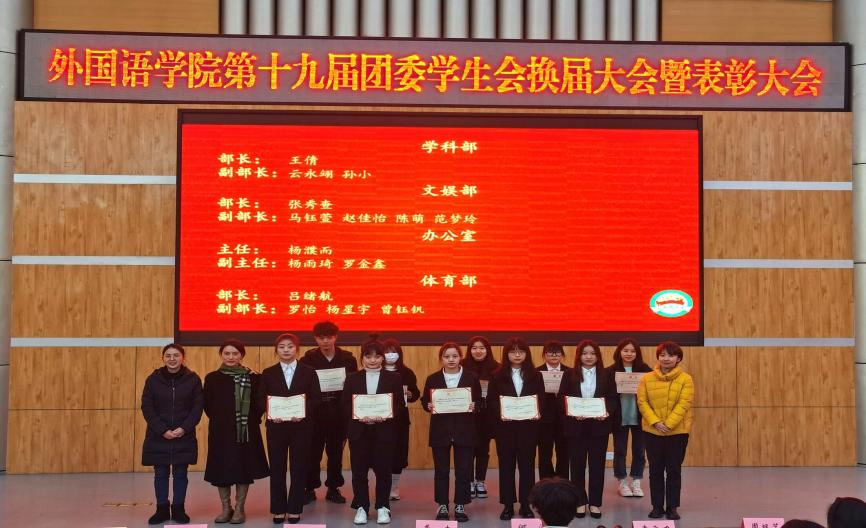 12月20日12时30分,伟德国际1949第十九届团委学生会换届暨表彰大会在四教报告厅举行。本次大会由院团委学生会主席向孝艺族主持,院学生党总支书记、学工办主任曾渝理、就业指导老师杨磊、团委指导老师彭陈丽、团委学生会全体成员以及各兄弟学院代表参加本次大会。