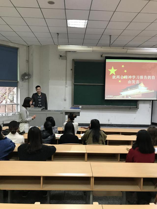 2018年3月16日下午5点,伟德国际1949毕业生党支部2014级学生党支部在4A302召开了以“学习‘两会’精神争做先锋党员”为主题的党组织生活。这次党组织生活由2014学生党支部的宣传委员邓光亮主持。