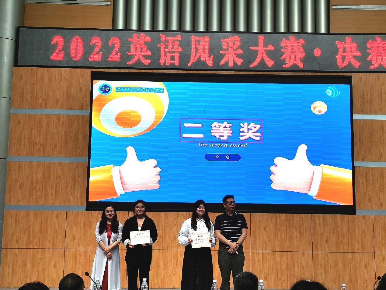 最后,由评委嘉宾们为选手们颁奖并合影留念,曾善美荣获本次大赛一等奖;王俊钦、李字颖荣获本次大赛二等奖;杨濮而、贺燕、尹恒荣获本次大赛三等奖;王琪、乐遥、万红、徐康卓、赵敏言、吴宛霖荣获本次大赛优秀奖。语言富有强大的力量,好的口才是展示自身魅力的必要方式之一。在同学们的掌声中,本次“ ‘英’击长空、气吞‘语’宙”英语风采大赛决赛落下了帷幕。