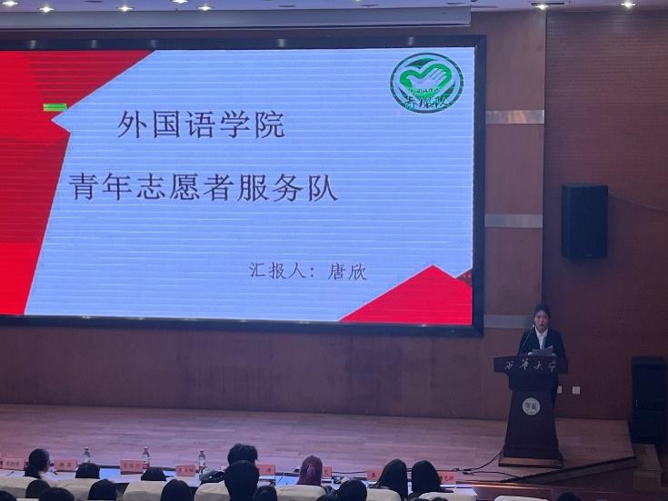 图为青年志愿者服务队进行部门述职