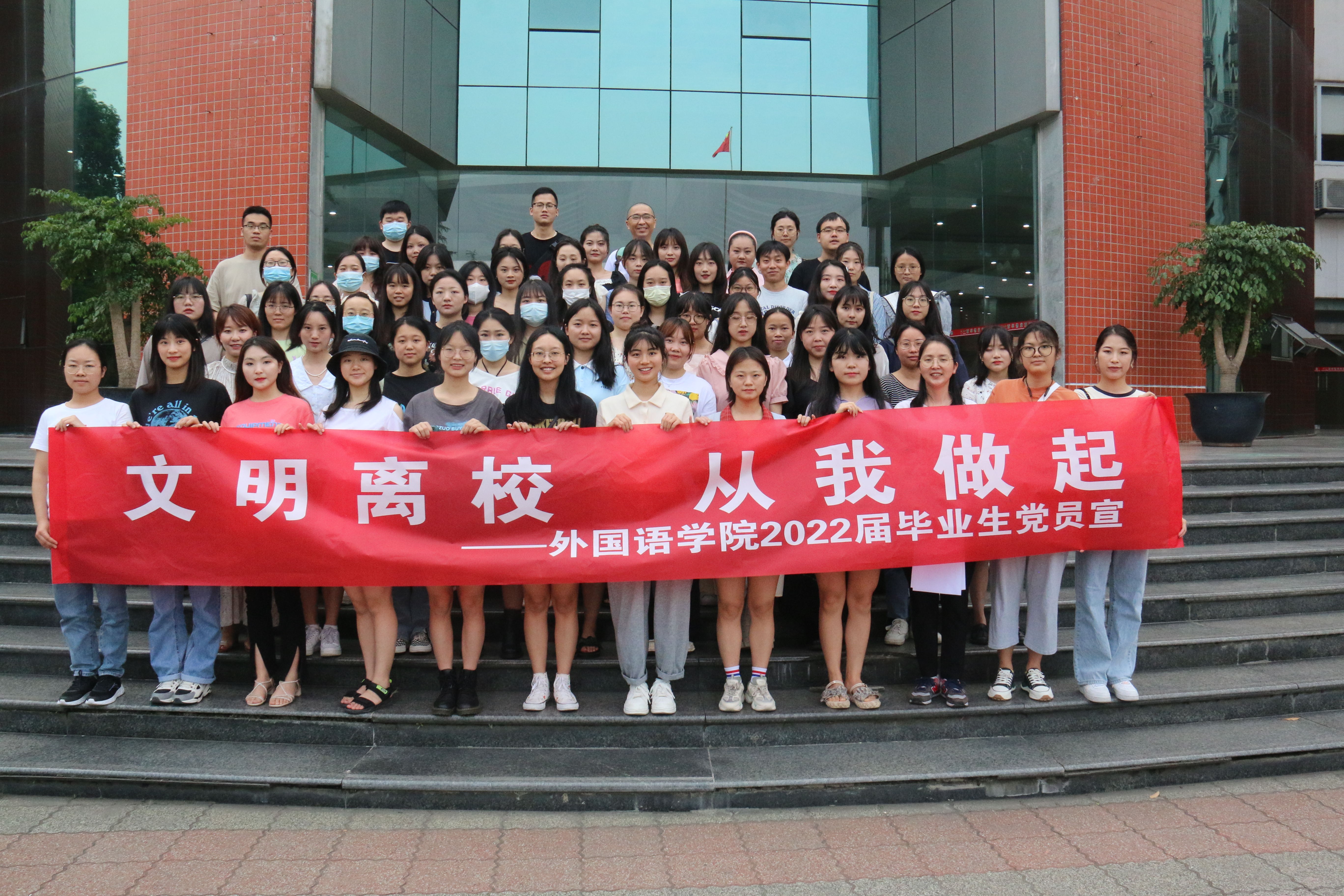 在大会的最后,为充分发挥毕业生党员的模范带头作用,全体毕业生党员在“文明离校 从我做起”横幅上签名并宣言。这是一个对本科生涯的告别,更是对走向未来人生新起点的宣誓。
