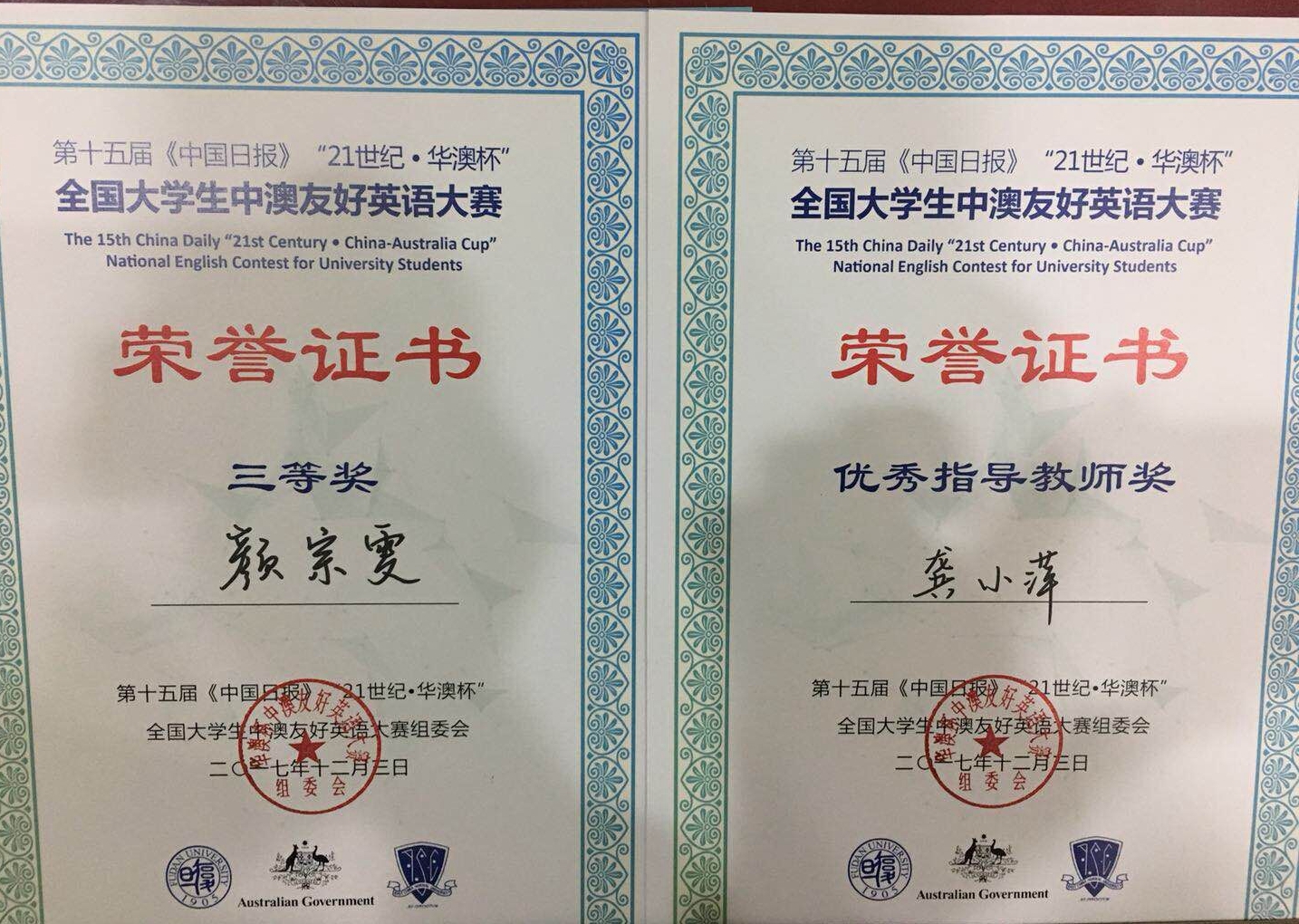 我院学子和老师在第十五届《中国日报》“21世纪·华澳杯全国大学生中澳友好英语大赛”中取得佳绩
