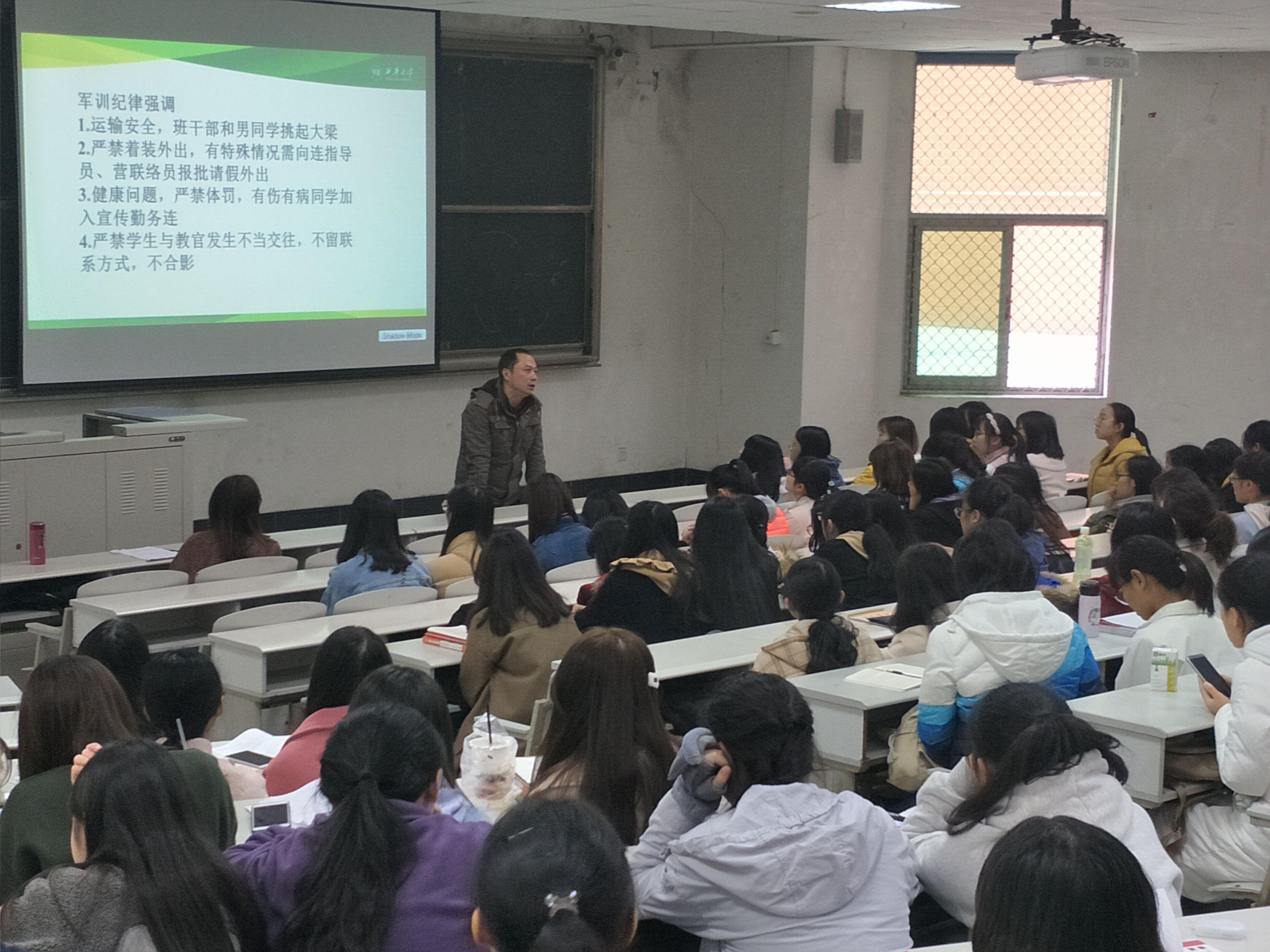 接着,罗雨虹老师做了军事纪律强调,介绍了此次军训的具体方案。她还讲解了宜宾研究院的住宿条件、管理制度并提醒同学带好相关物品,要求各同学要听从组织安排,希望同学们予以重视。最后,罗雨虹老师详细解答同学们的相关疑问。