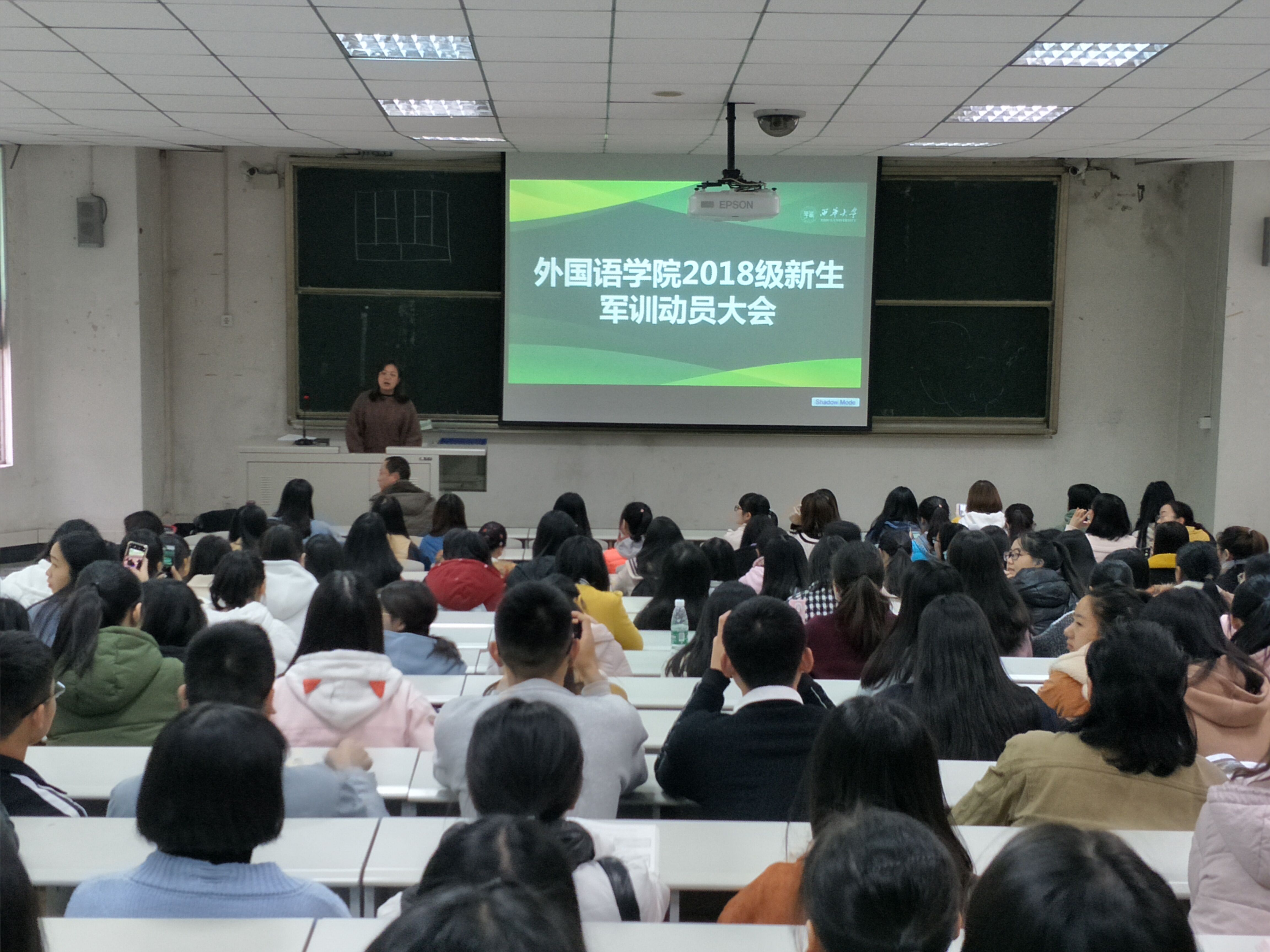 2018年11月14日中午12:30,我院于4A104开展了伟德国际19492018级新生军训动员大会。出席本次会议的嘉宾有伟德国际1949党委副书记兼副院长罗海老师、2018级新生辅导员杨磊老师、2016级日语专业辅导员罗雨虹老师以及伟德国际19492018级全体新生。本次会议由杨磊主持。