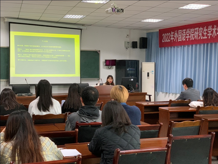 2021级外国语言学及应用语言学专业的阿旳尔各同学,从输入、输出与阅读文献等几个方向分享了她的经验。其中,读书报告与读书规划对她论文研究起到了重要作用。她还提到了研究生应建立自己的语料库,并且学习各种技能的重要性,比如对SPSS和Python的学习。