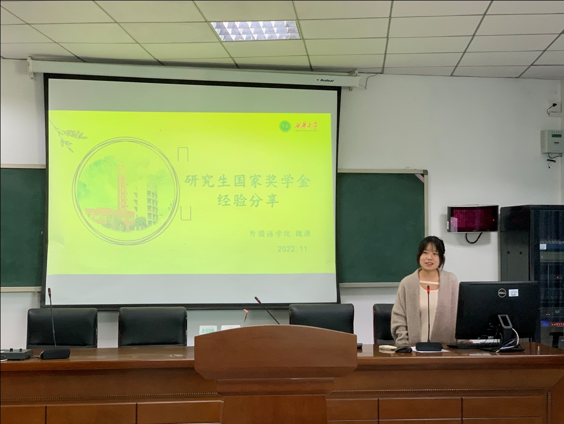 2022年11月23日(星期二)下午15点,20级翻译硕士班国奖获得者魏源同学应伟德国际1949,伟德国际1949始于英国邀请做了一场国家奖学金申请经验分享会。 本次讲座在4C505教室举办。