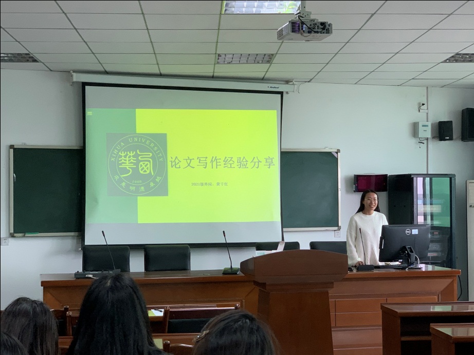 2021级外国语言学及应用语言学专业的黄千红同学分享论文写作经验分享。这位获奖同学从选题背景与意义、研究方法与过程、研究成果与应用等四个方向分享了自己的经验,她着重强调了文献综述对于写论文的重要性。