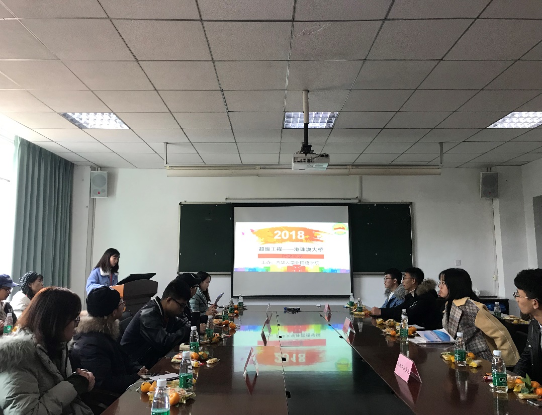 此次时政沙龙活动的主题为“港珠澳大桥”,并围绕“超级工程—港珠澳大桥”、“‘港珠澳’意义与效应”、“港珠澳与成都”、“港珠澳大桥背后的男人”四部分展开。首先,魏源请出席成员进行自我介绍并欢迎大家的到来。随后,她对“港珠澳大桥”进行简单地介绍并组织大家观看《你好,港珠澳大桥》纪录片,进一步加深“港珠澳大桥”的了解并感受到“中国制造”所带来的震撼。接下来魏源对港珠澳大桥建成的意义和效应,其与成都之间的关系以及港珠澳大桥总设计师林鸣详细介绍,同学们深刻地理解了港珠澳大桥作为超级工程的超级创新。在问题讨论环节,两个学院为一组,围绕“港珠澳大桥”,从“如何培养创新精神”、“大学生就业”和“大学生如何为祖国做贡献”三个问题进行讨论,并派代表积极发言。同学们结合所学专业表达自己对祖国发展的认识以及勇担时代重任的决心。