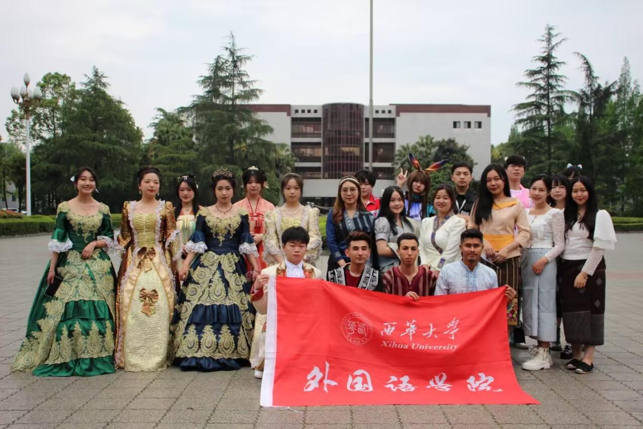 此次东西方文化风情街活动,本着参与趣味游戏、体验各国风情、展示国家文化多样性的目的,使同学们在体验异域风情、他国文化的同时激发同学们学习外语的兴趣。此次活动针对西华大学全体在校学生,共分成了四个板块:中国板块、一带一路板块、英美板块、以及日本板块,并在明德广场设四个点位,每个点位放着介绍国家特色文化的展板,并设置了相关小游戏。同时也邀请到了来自老挝、摩洛哥等国家的国际留学生,他们身着家乡特色服装,积极参与本次活动。
