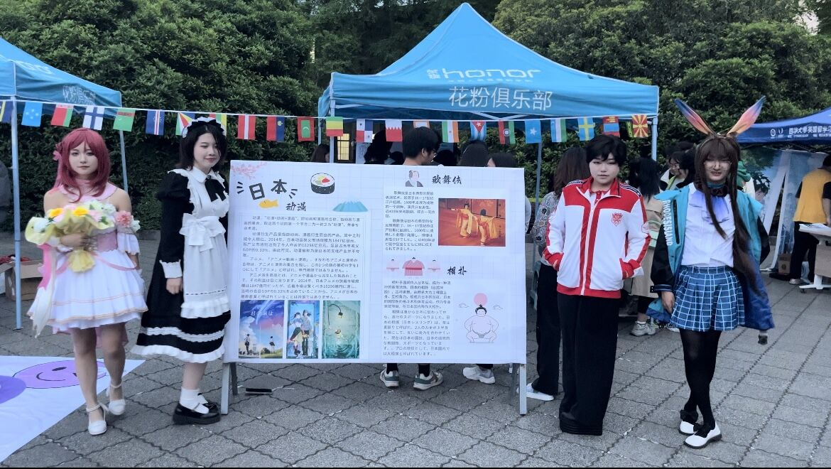 在中国展区中,制作了有关中国汉服的演变的文化展板并安排同学穿汉服,增添活动吸引力的同时也让同学们更加了解中国的传统服饰的发展演变,让同学们对汉服产生了浓厚的兴趣,增强了同学们的文化自信。
