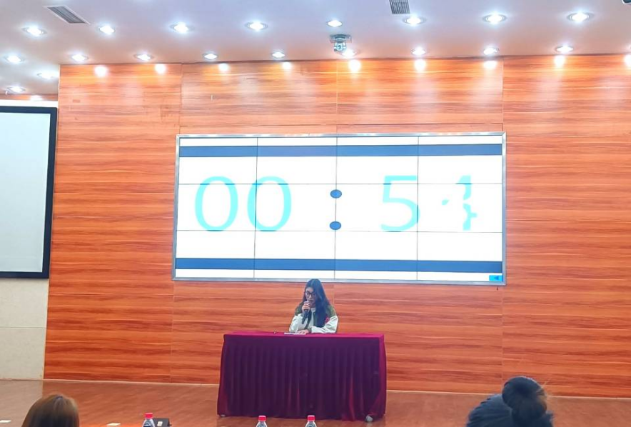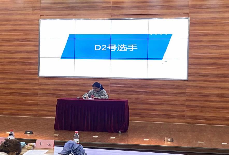 紧接着是第二轮的中译英比赛,本轮比赛和上一轮不同,需要选手在听取中文音频的同时做好笔记,音频播放完毕后立即在规定的110秒时间内,将听到的内容翻译成英文并叙述出来。虽然第二轮的比赛难度较第一轮有所提升,但选手们仍然能够迎难而上,向我们展示他们的能力与风采。