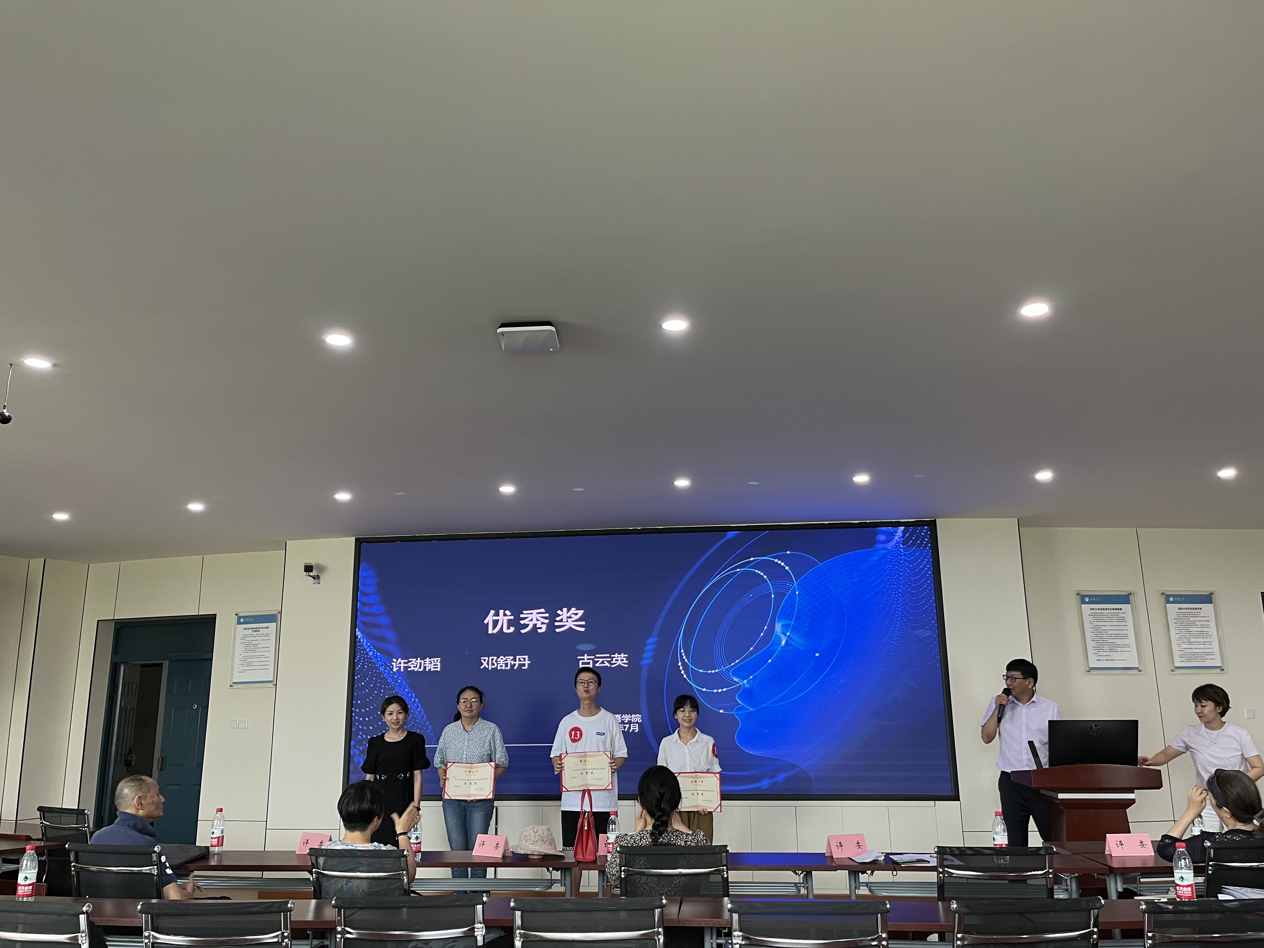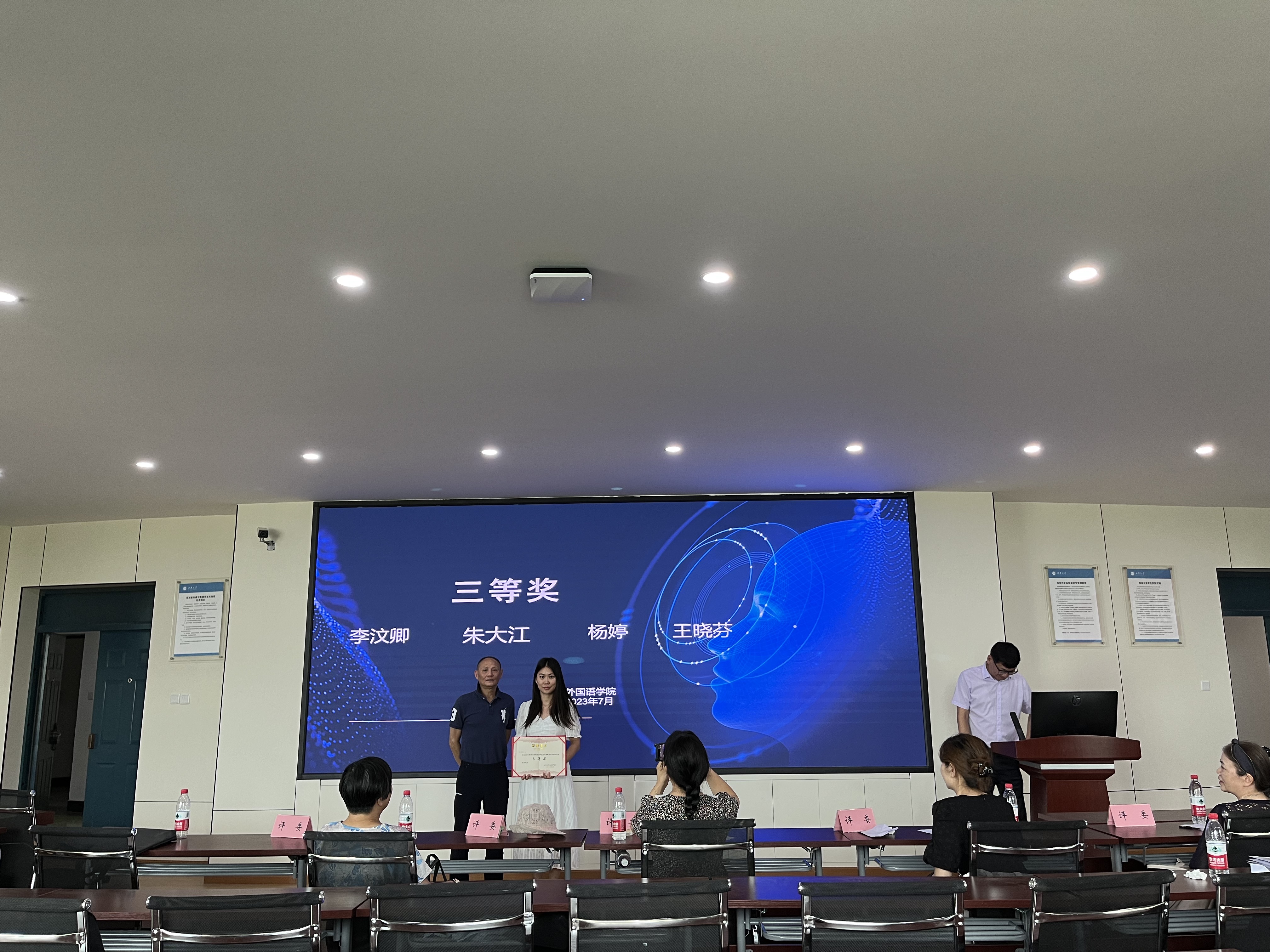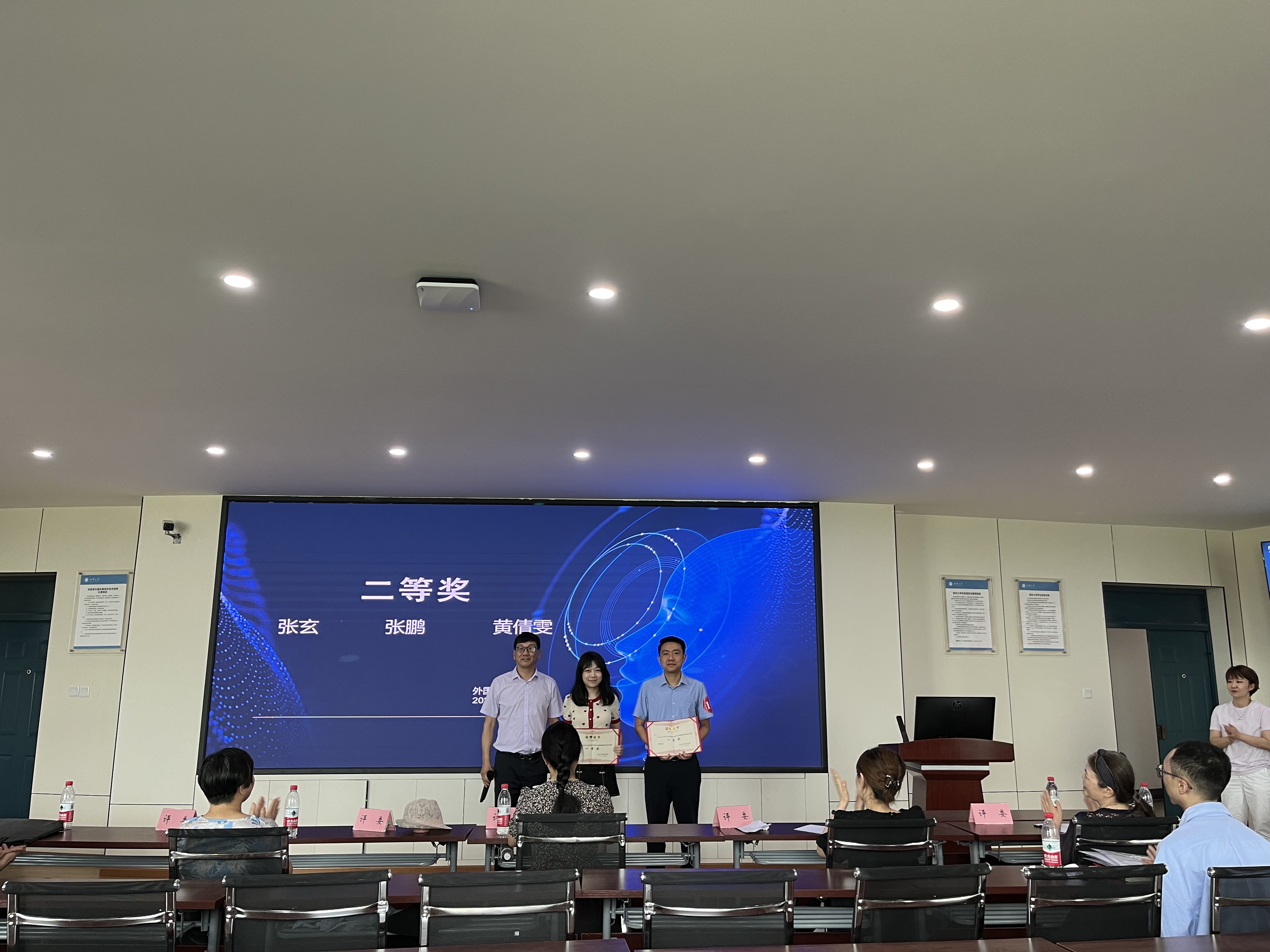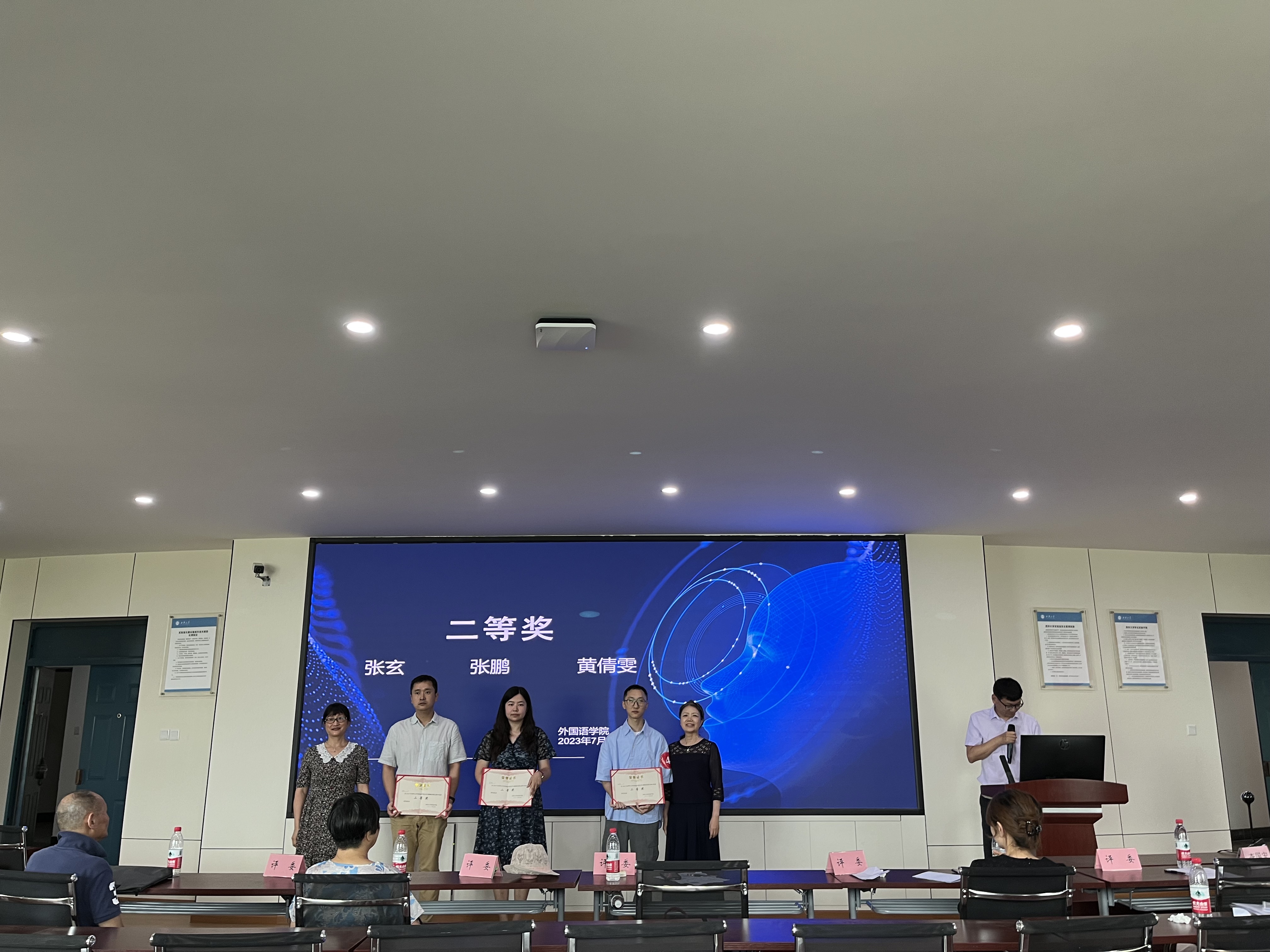最后,根据青年教师们的精彩表现和最终分数,主持人李学芹副院长宣布一等奖、二等奖、三等奖最终获奖者名单,五位评委分别为获奖青年教师颁发奖状。