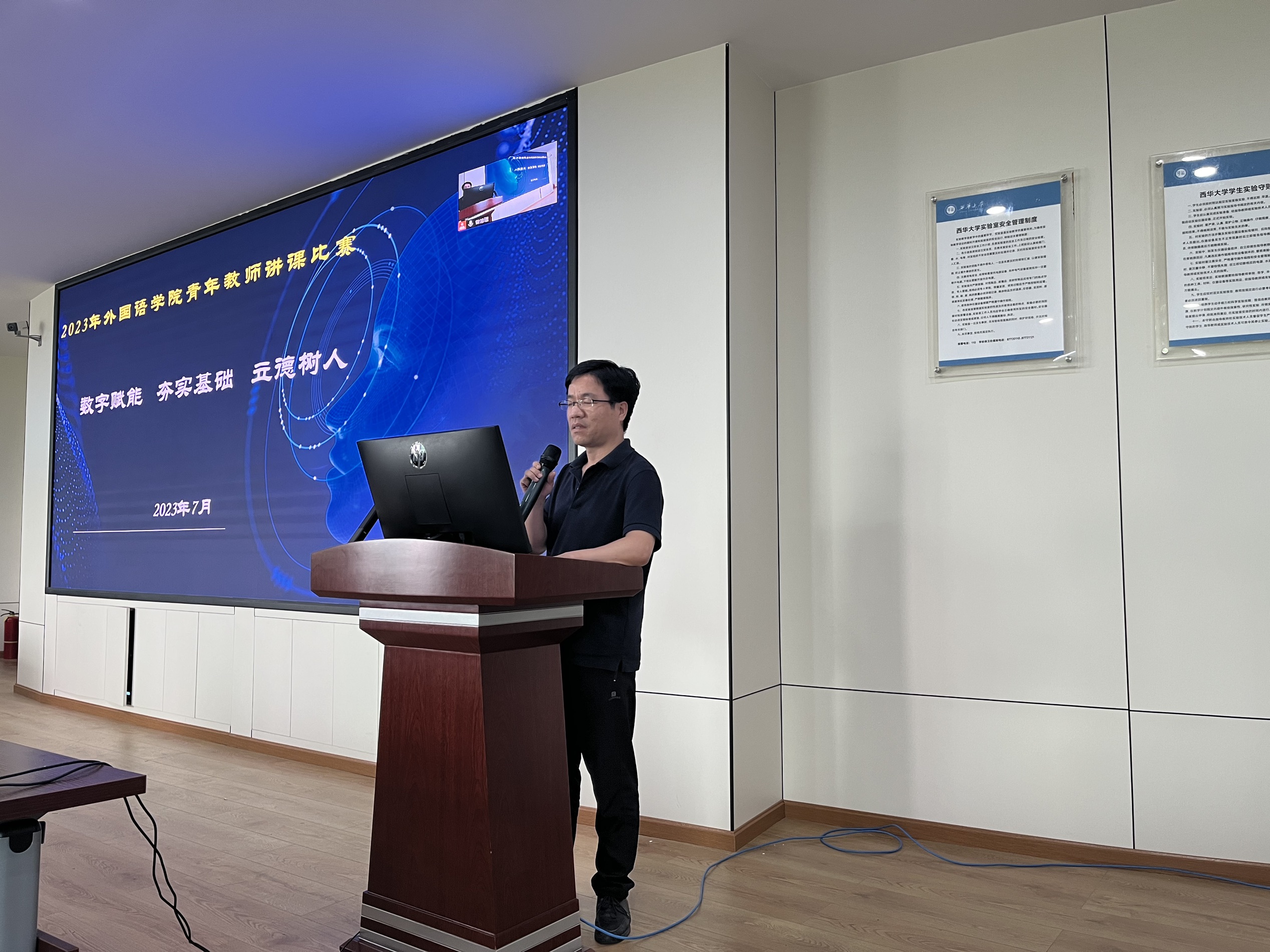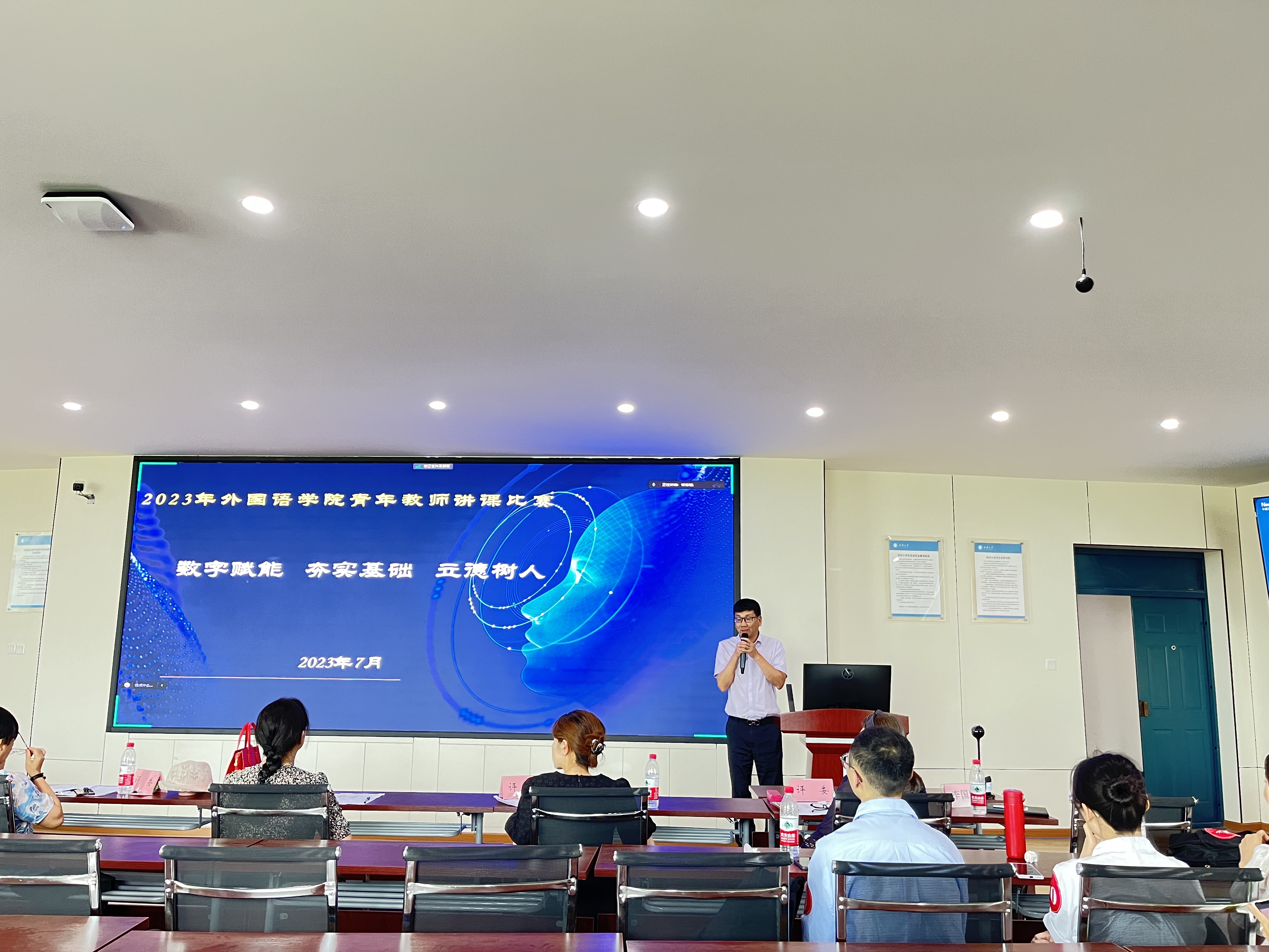 教育事业的发展需要不断培养和选拔优秀的青年教师。为激发教学创新,提升教学质量,伟德国际1949于2023年7月4日在4C-504成功举办了一场主题为“数字赋能、夯实基础、立德树人”的青年教师讲课比赛。此次比赛由李学芹副院长主持,12名来自伟德国际1949英语系、翻译系、日语系的青年教师参与角逐,全院教师利用线上及线下的方式进行观摩学习。