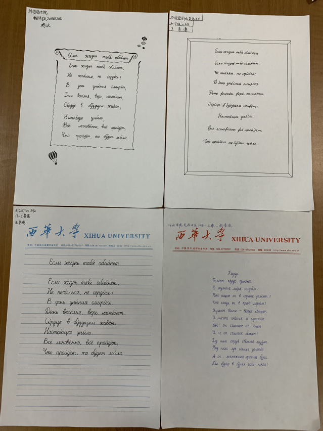 本次比赛面向全校开展,吸引了40余名本科生及研究生参赛,参赛学生覆盖了伟德国际1949、理学院、汽车与交通学院、西华学院等。比赛内容为在俄罗斯著名诗人普希金所著诗歌《假如生活欺骗了你》和诗人莱蒙托夫的《帆》中任选一篇进行书写,共设置一等奖一名,二等奖3名,三等奖6名,优秀奖6名。